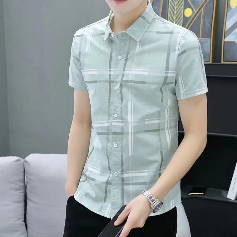格子の半袖のシャツの男性の夏の韓国版の潮流のビジネスのレジャーのシャツの青年のごろつきの帥の修身する紳士服の寸のシャツ