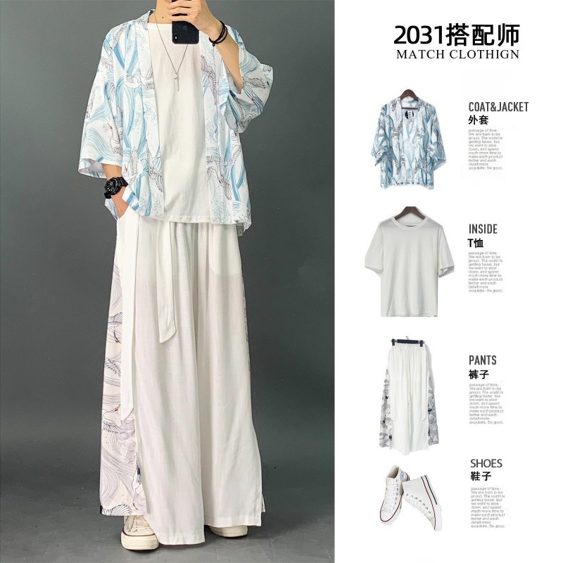 三点セット中国風服セットファッション漢服男夏唐装古風仙気服古着セット男
