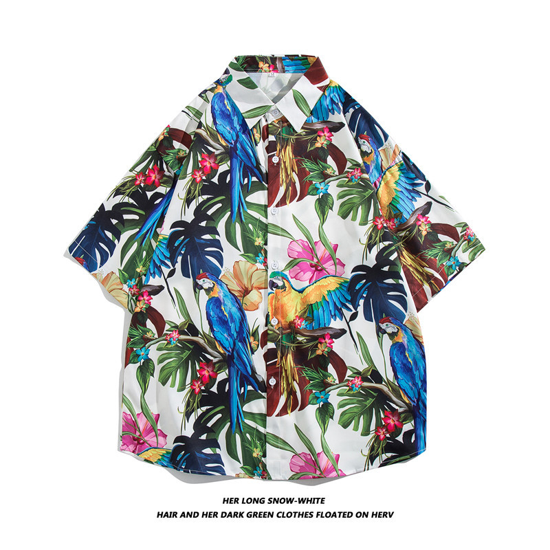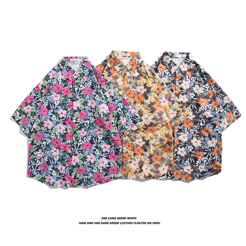 香港風日系半袖花シャツ男韓版トレンドゆるいハワイ復古痞帅海辺花シャツ男潮