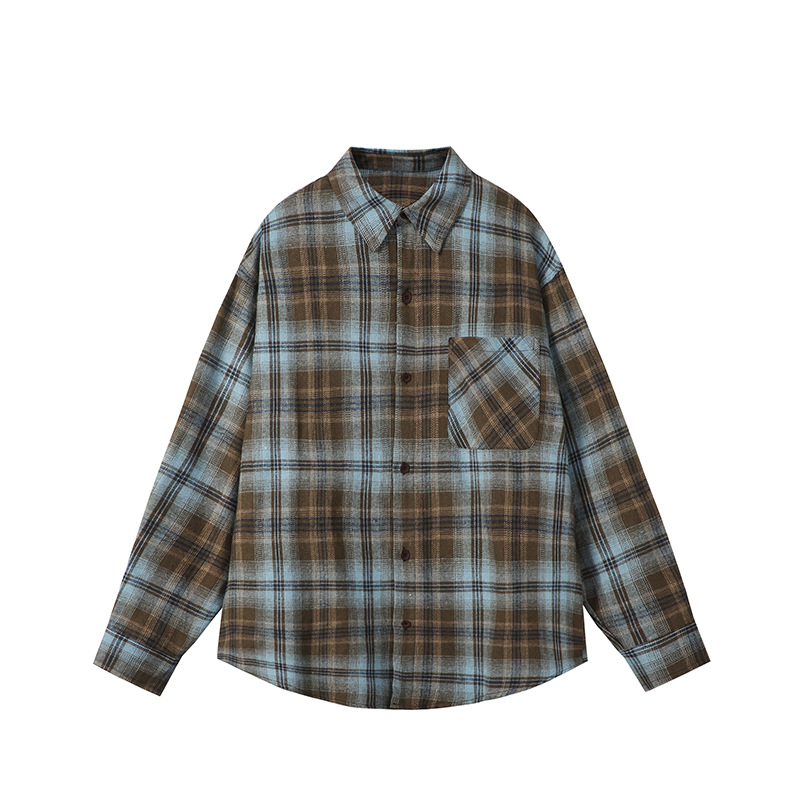 春秋潮牌磨毛格子シャツ男女秋アメリカレトロゆるい格子長袖シャツカップルコート