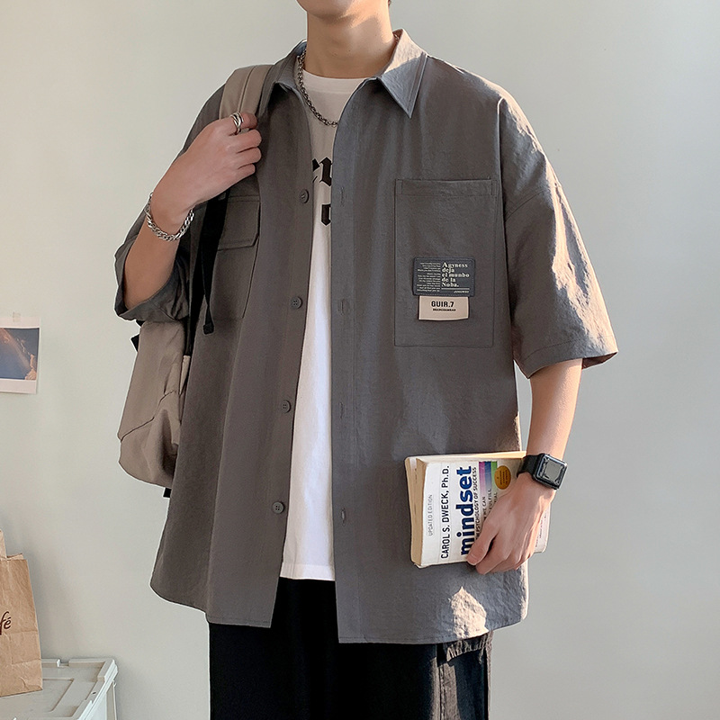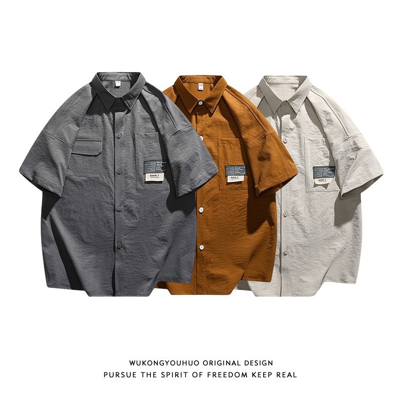 ゆったりとした工装シャツ半袖男性夏の香港風日系潮牌薄手シャツ青少年学生寸シャツコート
