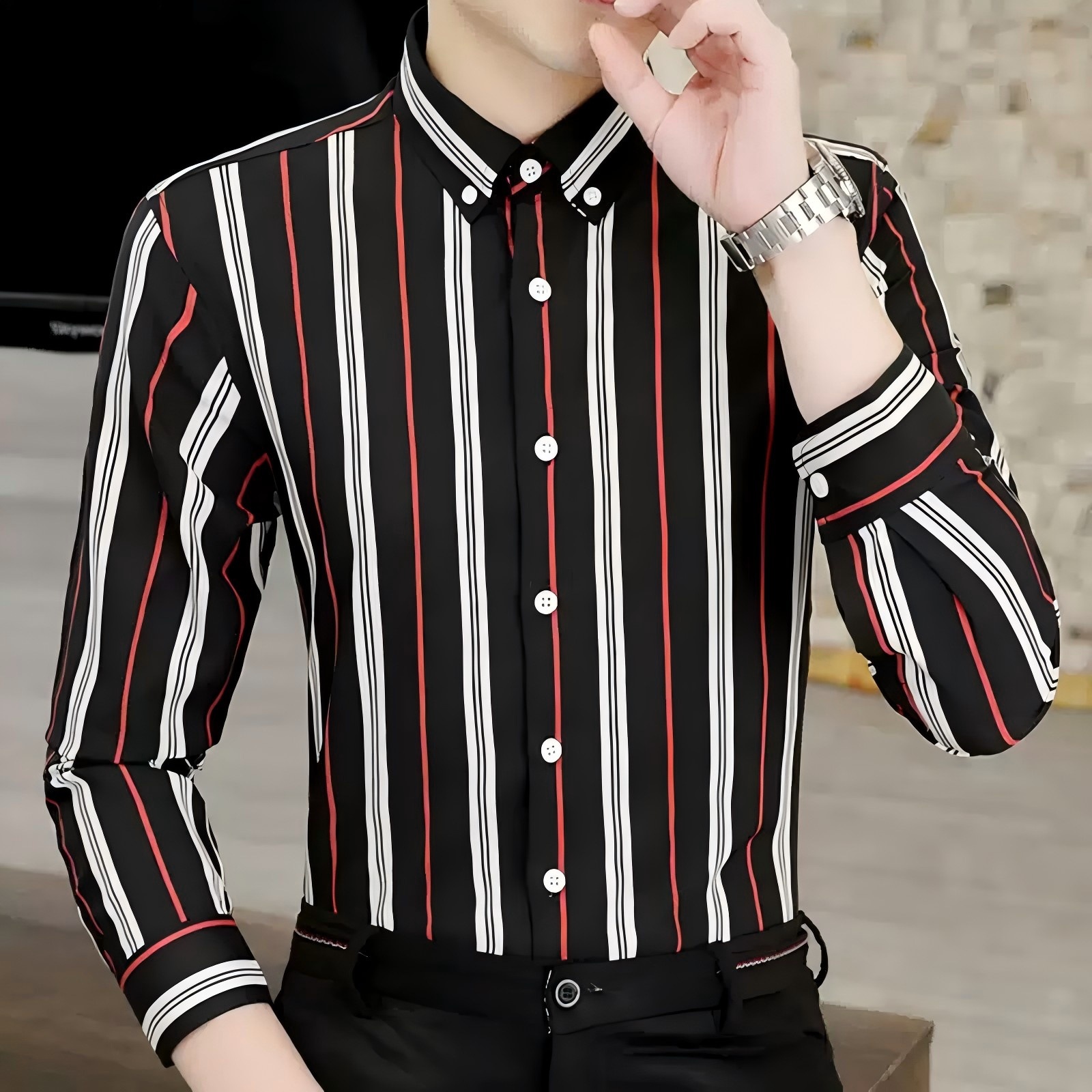 メンズ長袖ストライプシャツ韓国風トレンディルーズハンサムデザインハンサムカジュアル万能シャツシャツトレンディメンズ