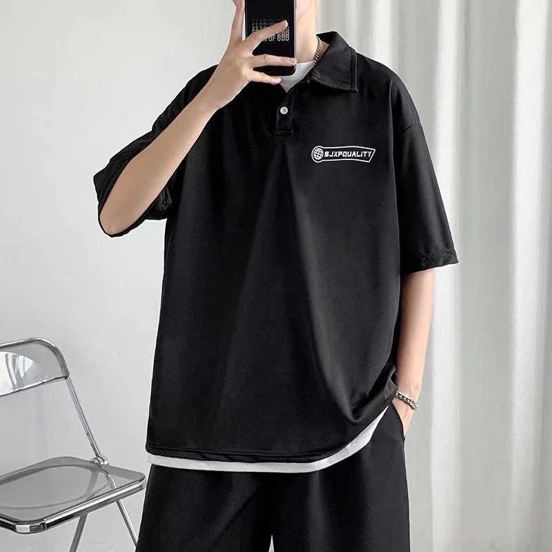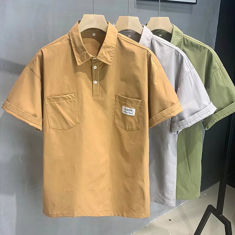 ポロシャツ半袖tシャツメンズ2022夏潮ins日系ゆるいカジュアルカップル半袖ポールシャツ