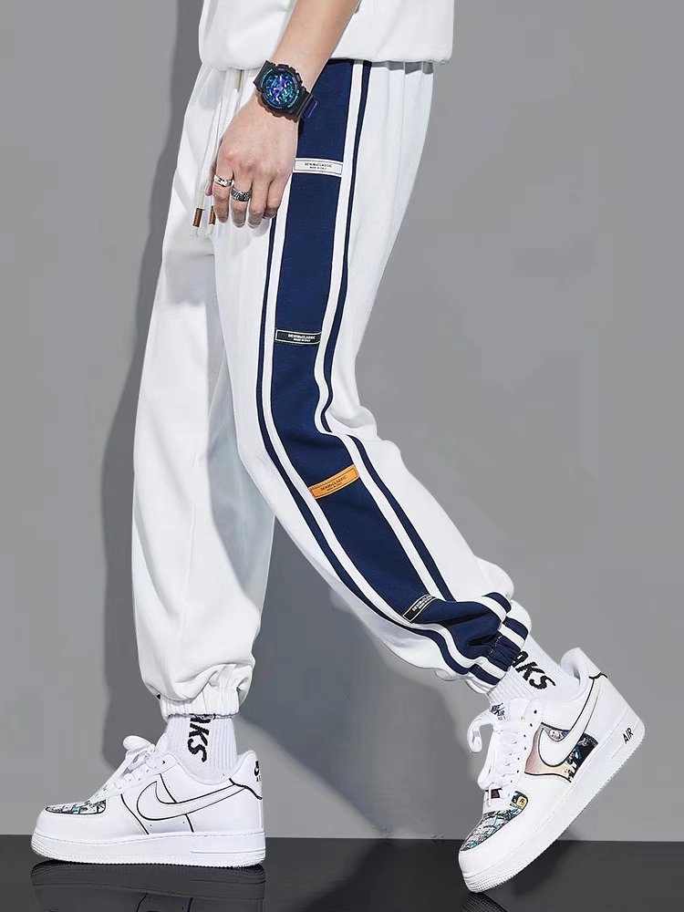 色のズボンの男性の潮にぶつかってカジュアルなスポーツのズボンの2022春のゴムは腰のまっすぐな筒のゆったりしているバスケットボールのトレーニングの衛のズボンを締めます。