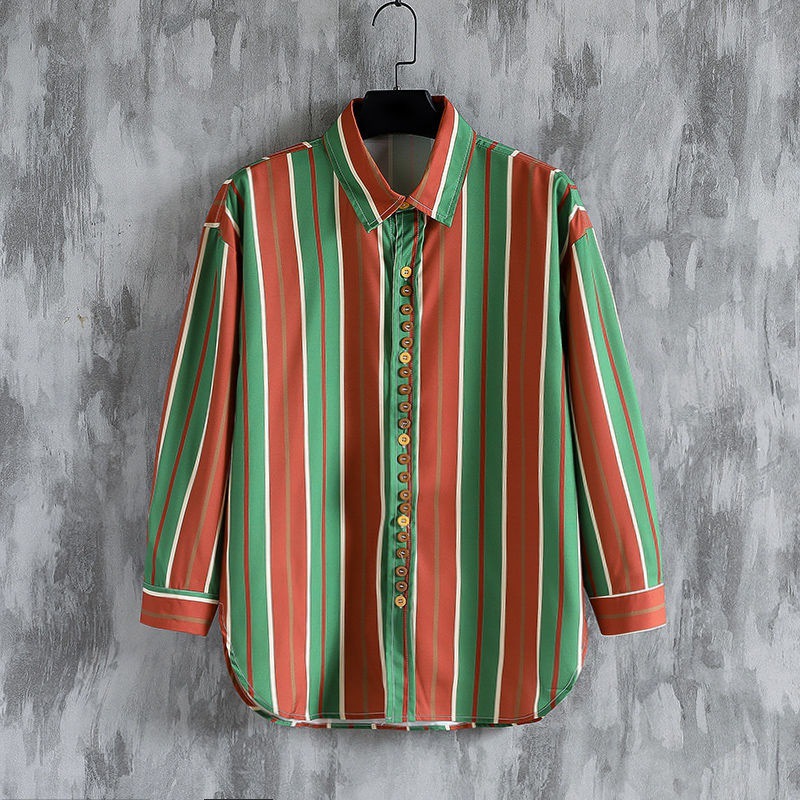 ストライプのシャツの男性のファッションの韓国版の7分の袖の寸のシャツはゆったりしています。