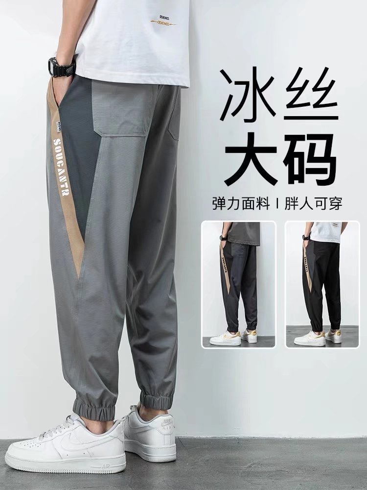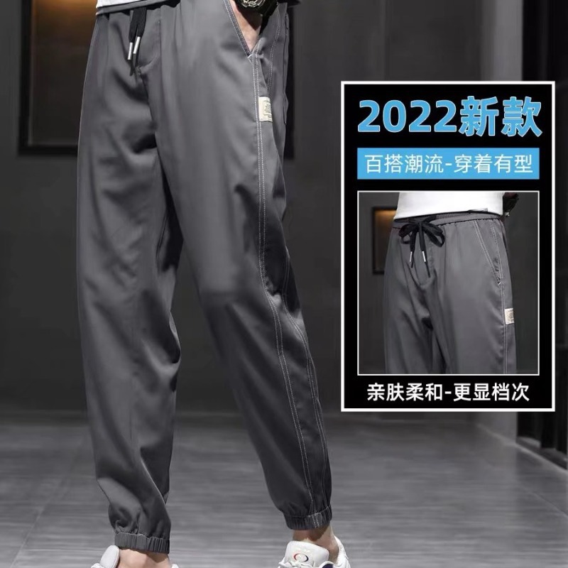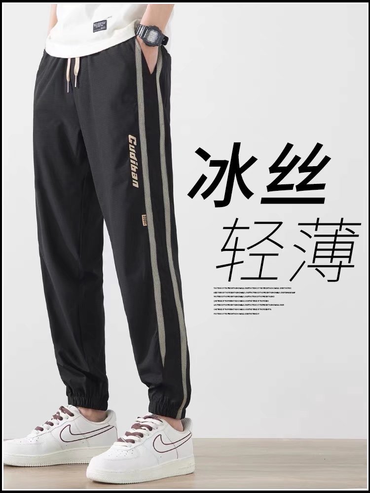 ズボンの男性の夏の韓国版のファッションの百合の足首のズボンの男性のズボンの氷の糸のレジャーのズボンの運動のゆったりしている衛のズボンの男性