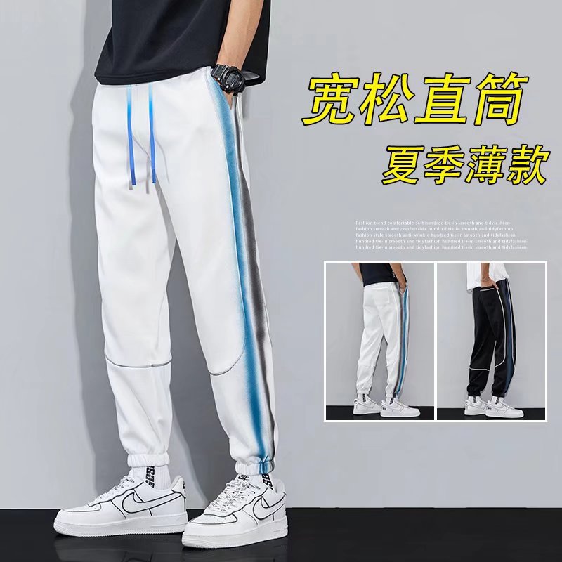 2022男子夏の新型香港風潮男直筒カジュアル百合ズボンゆるい流行百合氷糸ズボン男