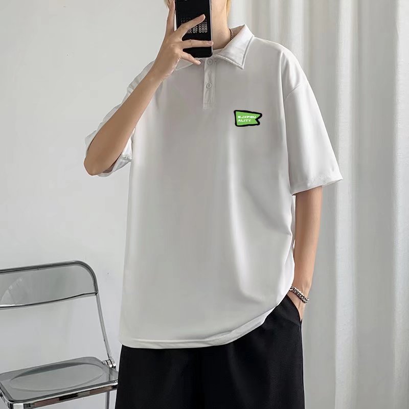 夏半袖tシャツ男性2022襟韓国版ゆるいシャツ襟ポロシャツ男性潮牌白色