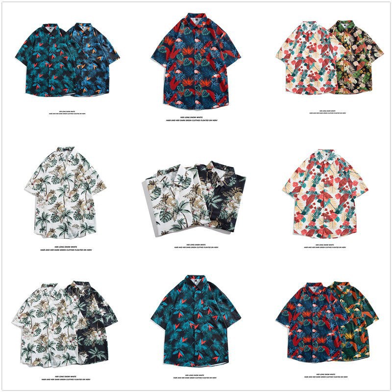 夏のファッション半袖花シャツ男禁欲系痞帅香港風レトロゆるいハワイビーチカップルシャツ