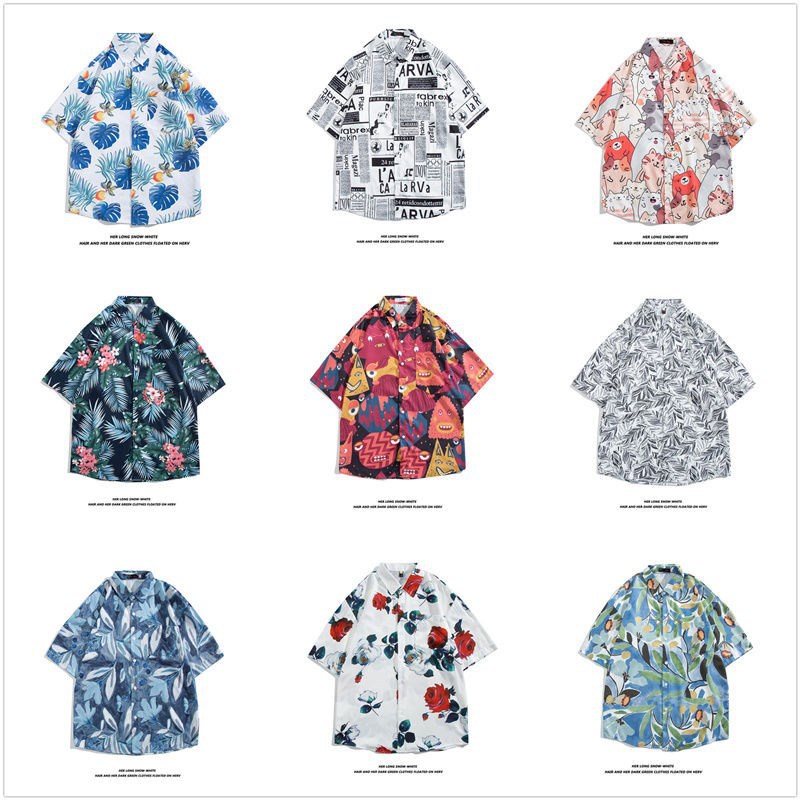 夏の半袖花シャツの流行はプリントのごろつきがいっぱいです。