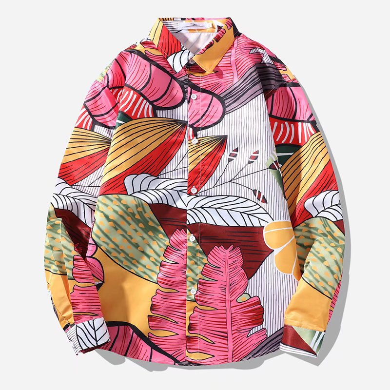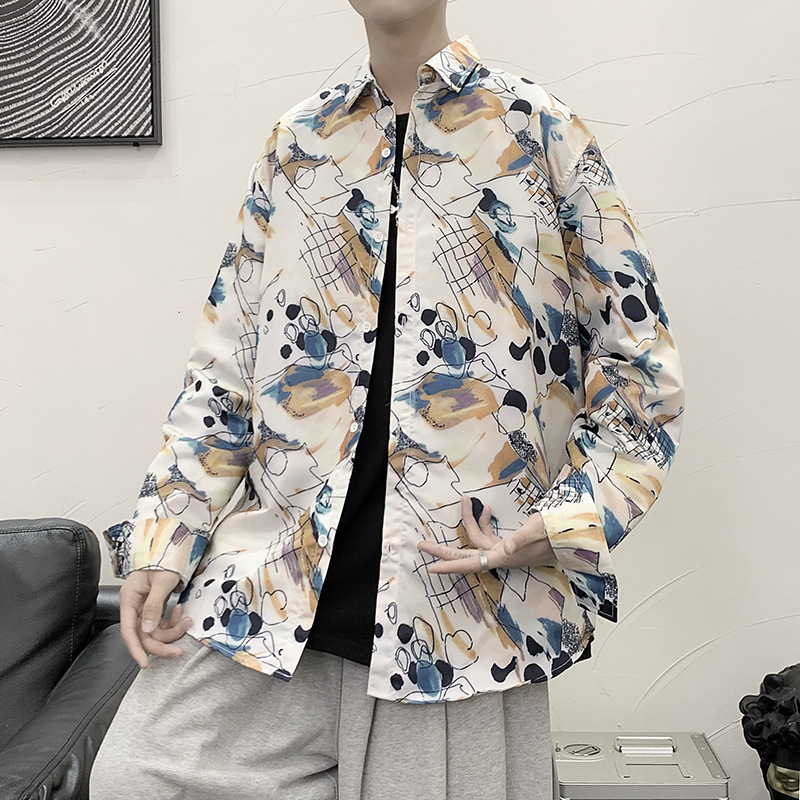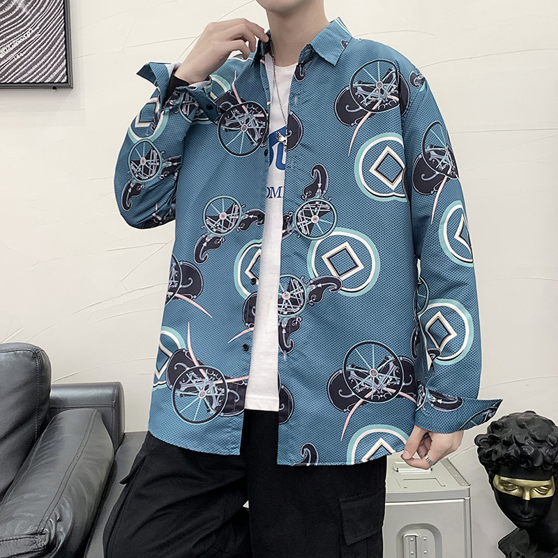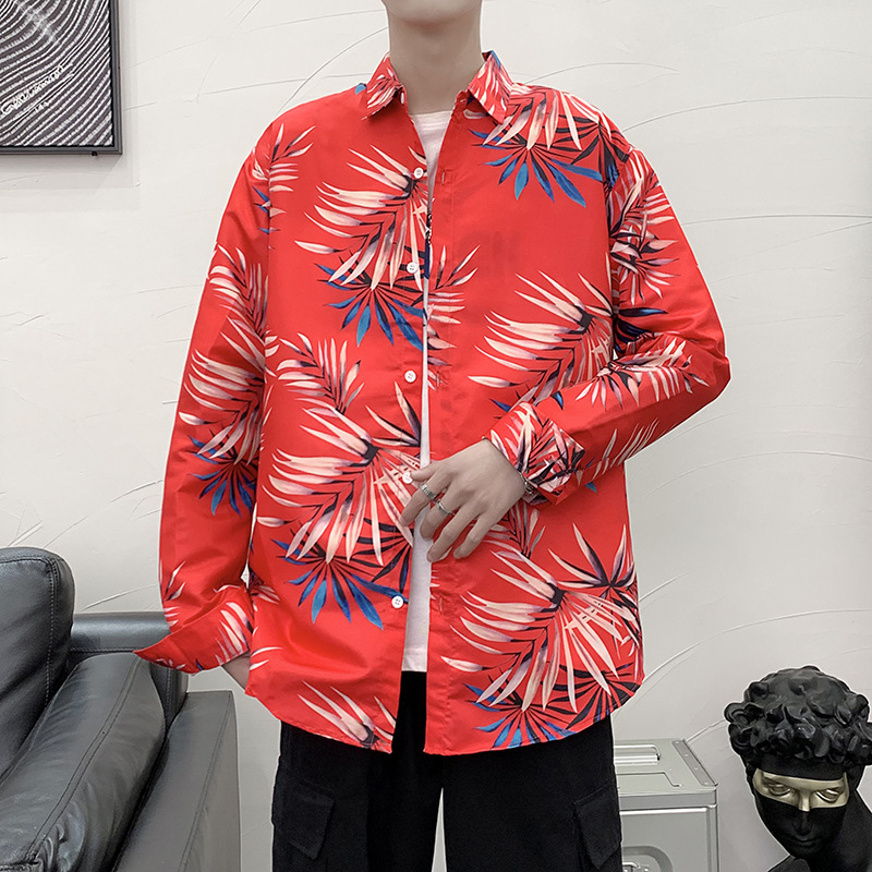 春の香港風insプリントシャツ男性カジュアル花柄シャツゆったりとした個性的な花柄ファッション長袖寸衣