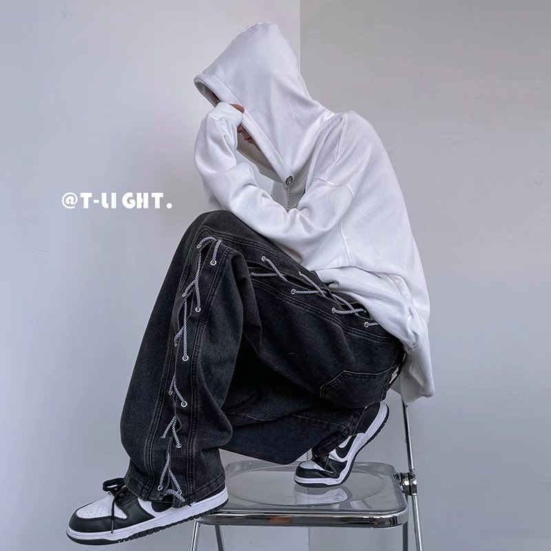 アメリカ風揚げ街ズボン高街ins潮牌カップルジーンズ男春秋ゆるいストレートパンツ