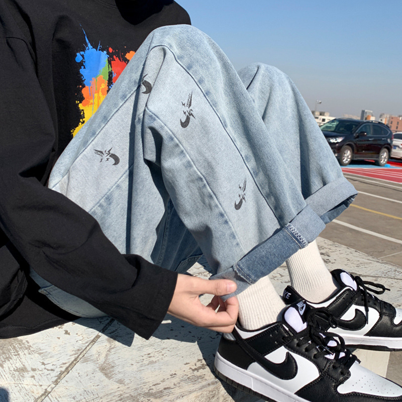 ジーンズ男春秋韓国版百合学生ゆったり広脚ズボンins潮牌港風レトロ直筒長ズボン