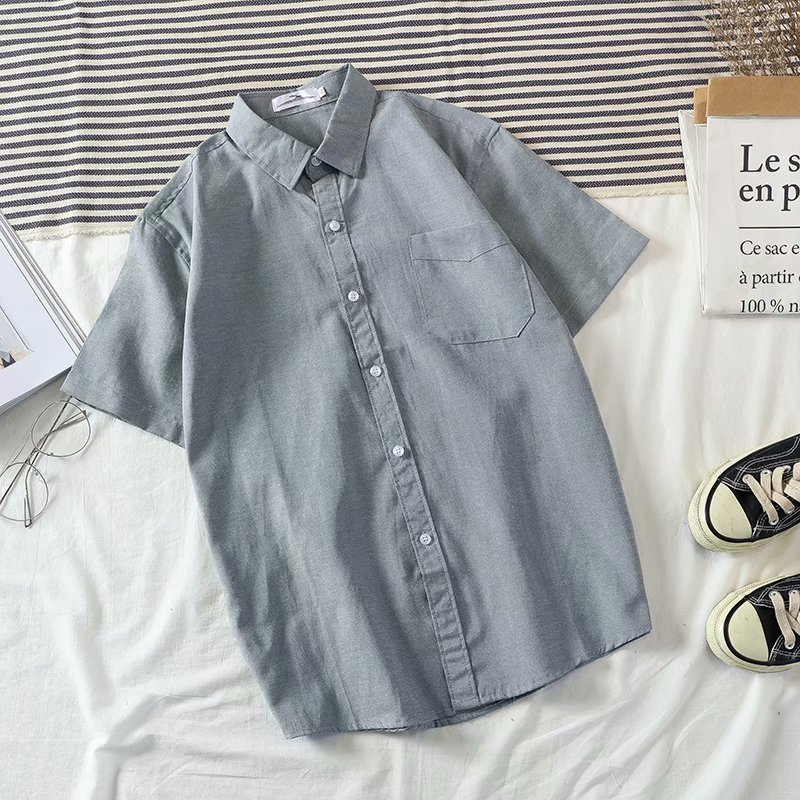 新型韓国版純色オックスフォード織半袖男性シャツ夏青年学生流行カジュアルカーディガンシャツブーム