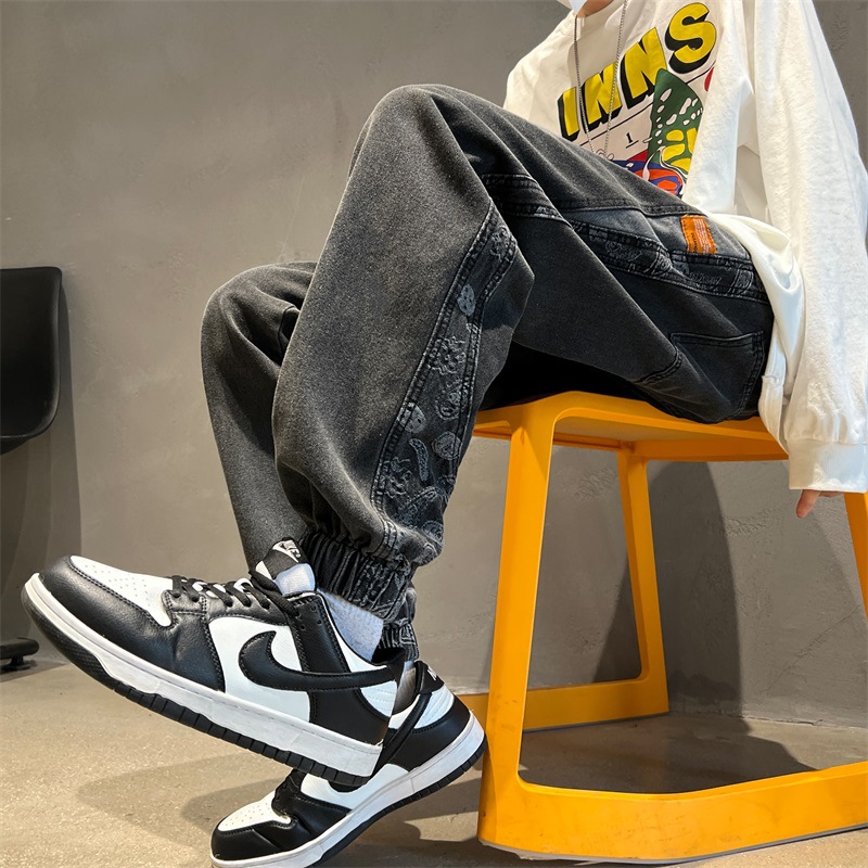香港風潮男春の新型2022腰果花ジーパンヒップホップins潮高街の潮流痞帅長ズボン
