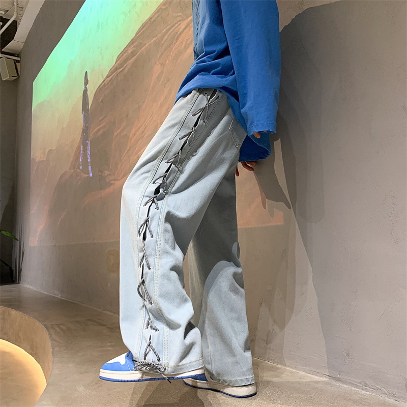 ジーンズ男ストレートゆるい春秋潮ins高街アメリカhiphop潮牌トレンド広脚長ズボン