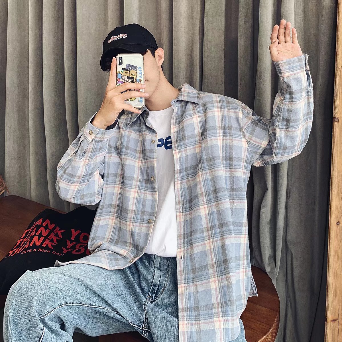 非常に仙人の格子のシャツの男性の長袖の潮流の学生の韓国版の秋のレジャーのゆったりしているごろつきのかっこいいシャツの香港風のコート