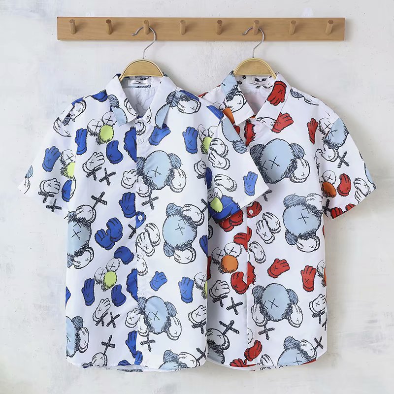 新商品2022夏カジュアル薄手メンズ漫画柄カーディガン半袖青春人気襟メンズシャツ