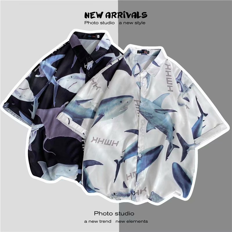 香港風ins半袖花シャツ男女夏日系カジュアルビーチシャツトレンドゆるいハワイコート