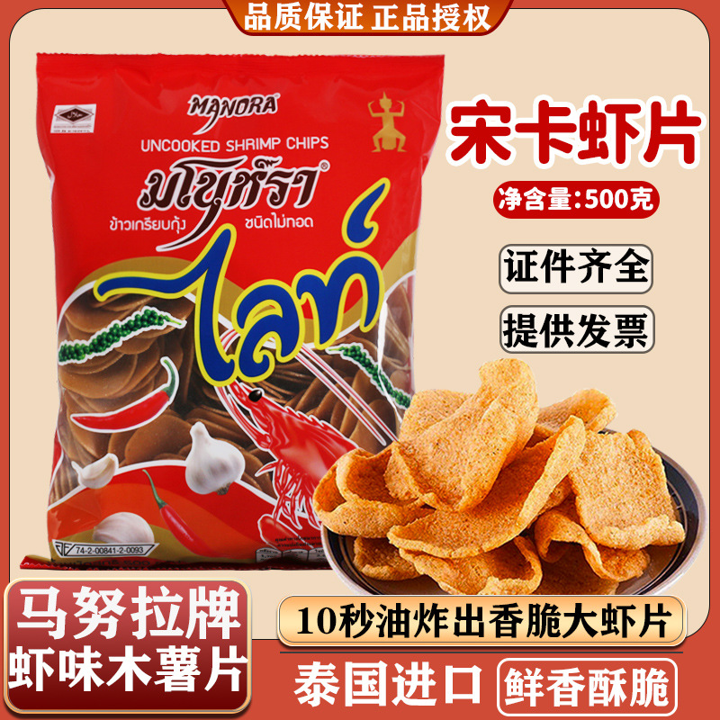 タイの輸入マヌラエビのスライス500gの自家製揚げ物の半製品の大エビのスライスの木のポテトチップスはサクサクと膨化します。