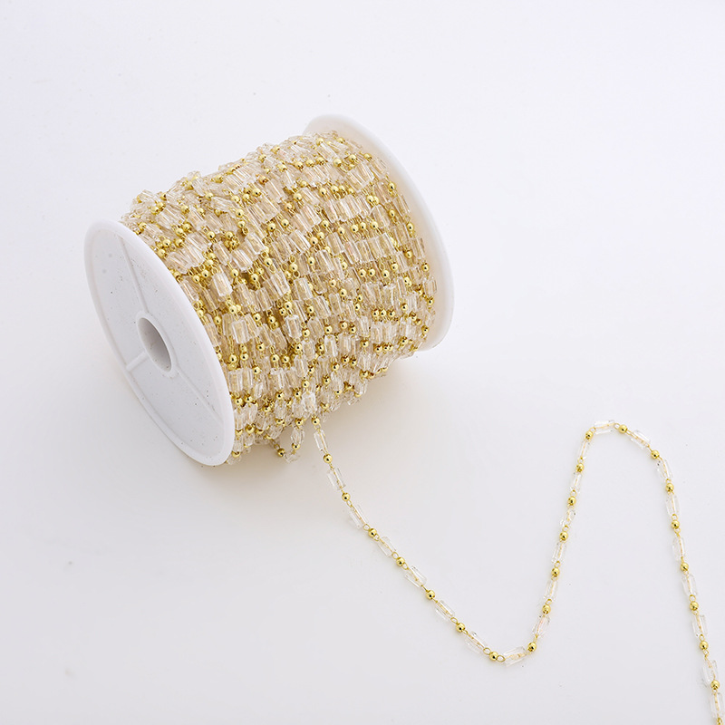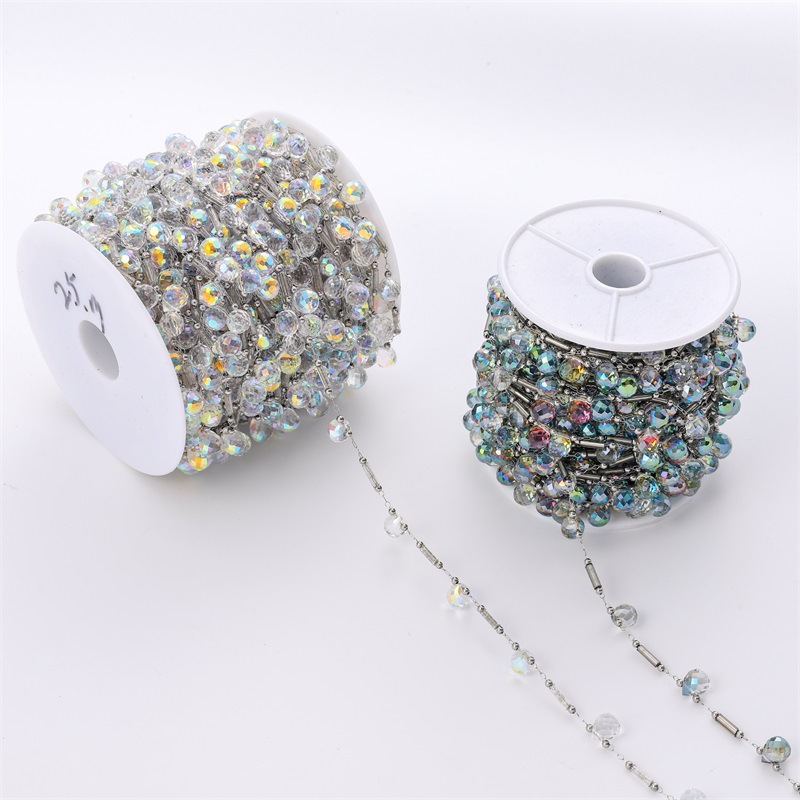 1センチ平水晶ステンレスチェーンビーズ手作り間隔チェーンdiy手作り水晶チェーン服装イヤリング