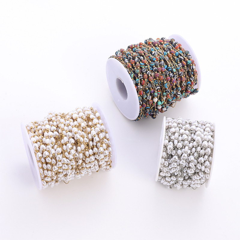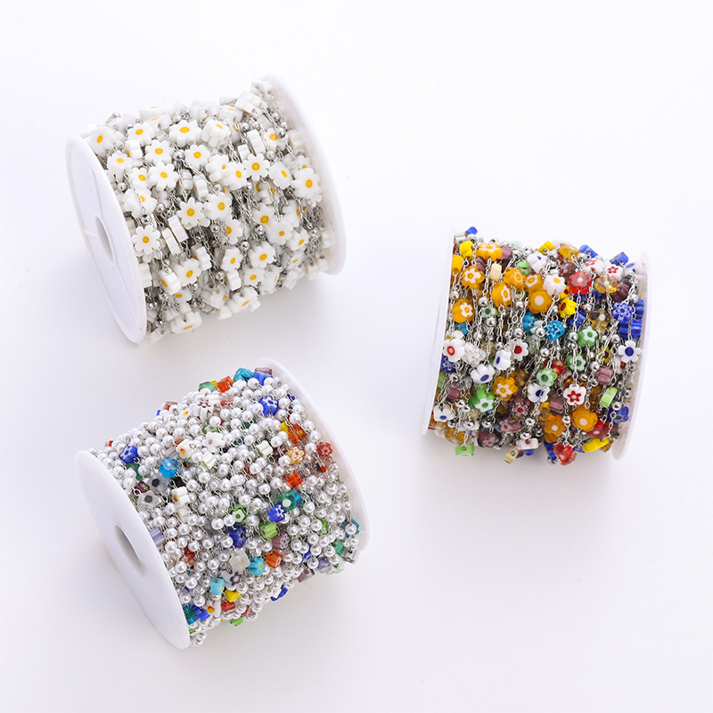瑠璃花間ステンレスチェーン白菊チェーン混彩珍珠チェーンカラー隔珠手作り手串部品
