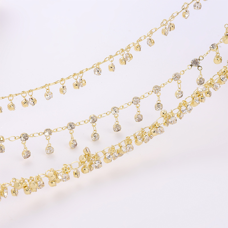 クリスタルチェーンdiyチェーン銅チェーンネックレス耳飾り材料古風部品クリスタルチェーン卸売り