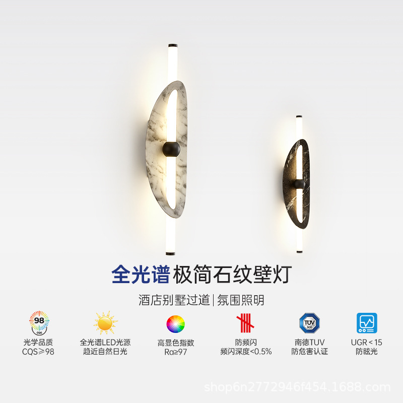 国境を越えた新しいアイデアは大理石の紋様の寝室のベッドのヘッドライトの極めてシンプルな客間のテレビの背景の壁の明かりの通路の明かりをまねます。