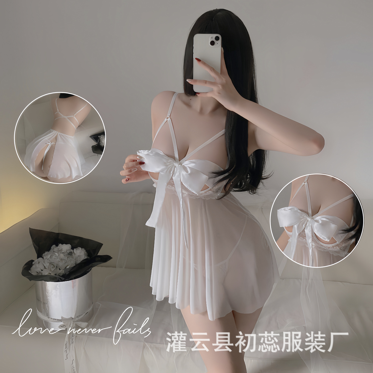 初蕊爾セクシーランジェリー、セクシーなメッシュシースルー薄手のサスペンダースカート、ベルベットのナイトウェア、情熱的な純粋な制服、誘惑的なセクシーな衣装