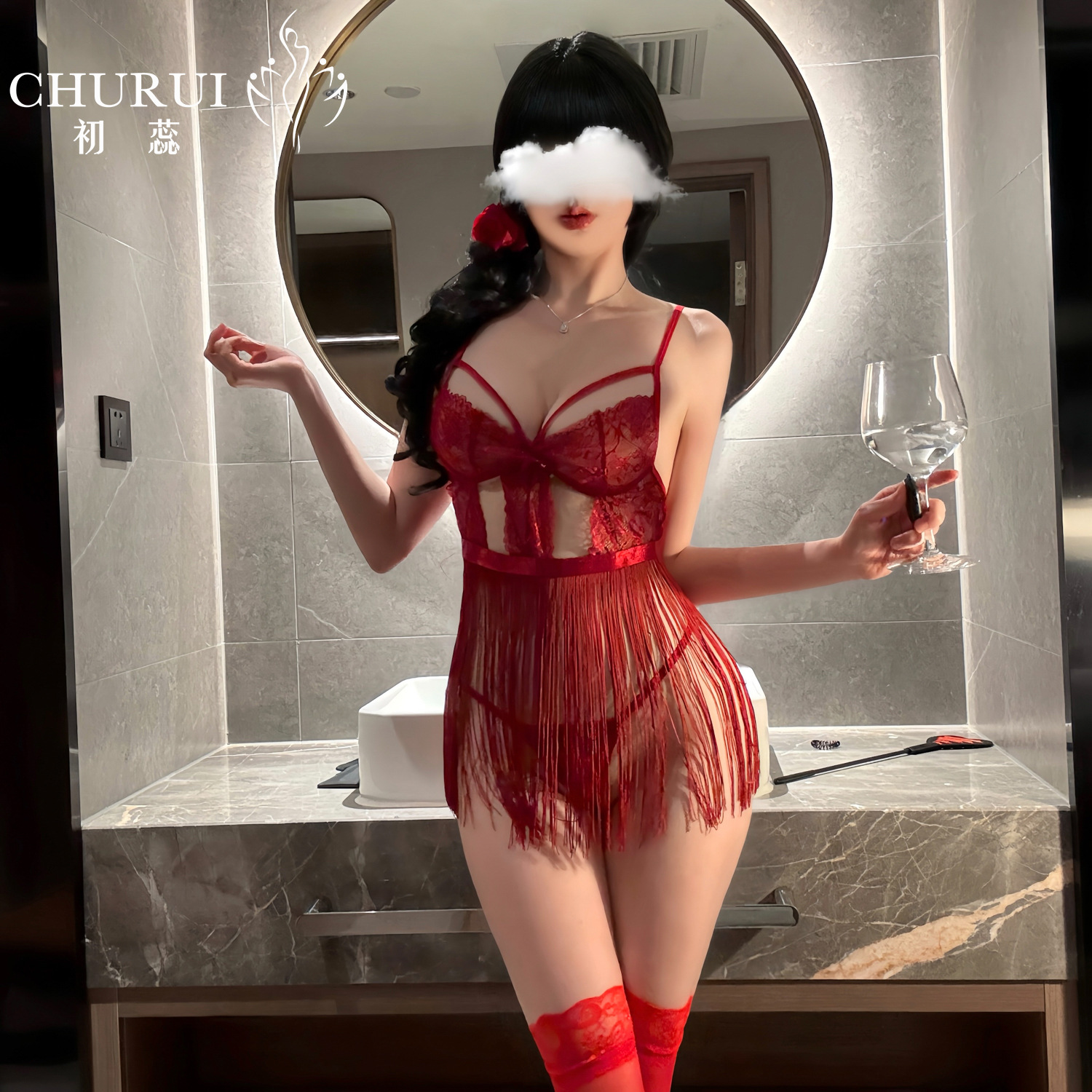 Churui セクシーなランジェリーセクシーなタッセルレディースショートスカート情熱的なシースルーサスペンダースカートワンピースパジャマセット 6565
