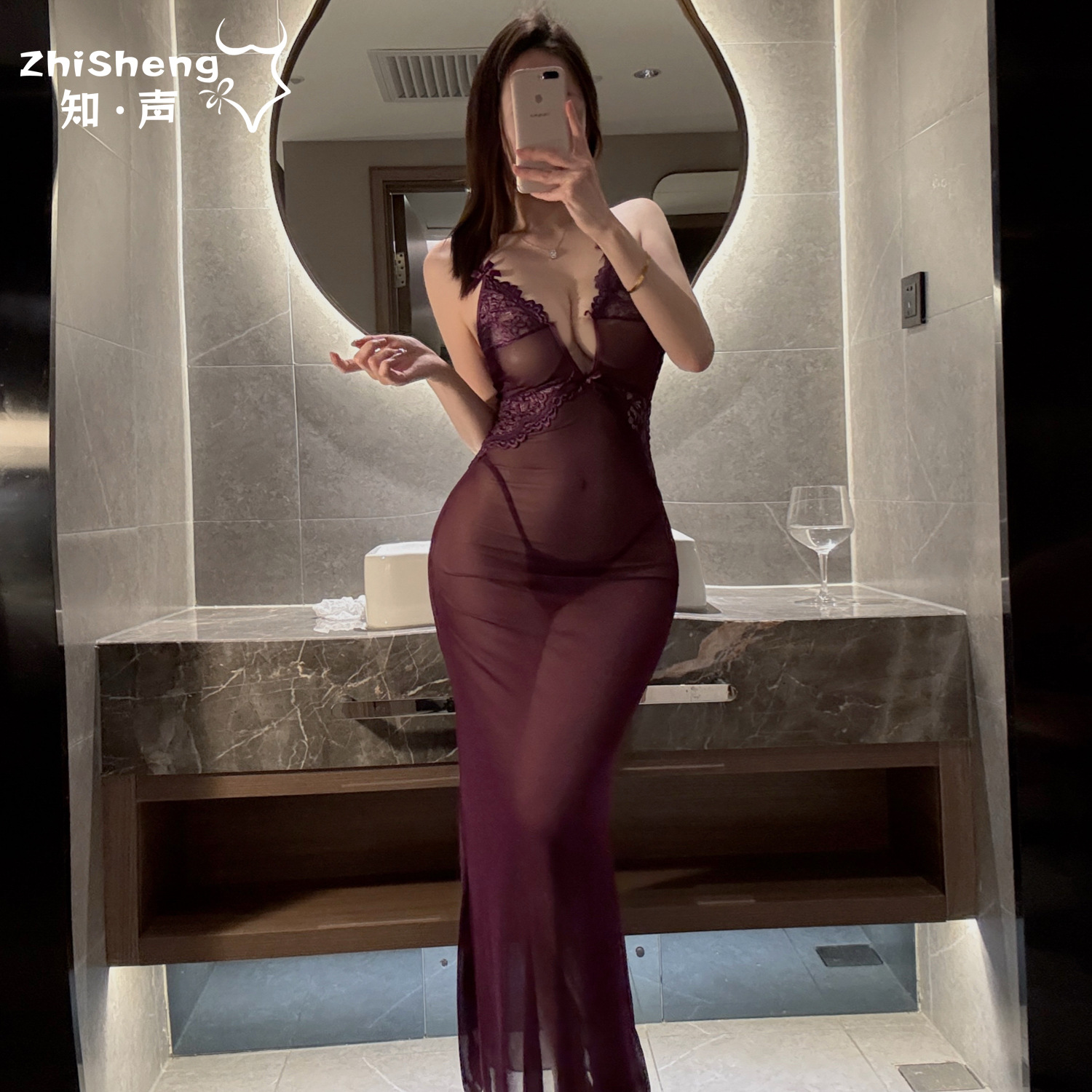 Churui セクシーなランジェリーロングスカートローカット純粋な欲望誘惑シースルーパジャマ女性のメッシュサスペンダーノーフリーパジャマ