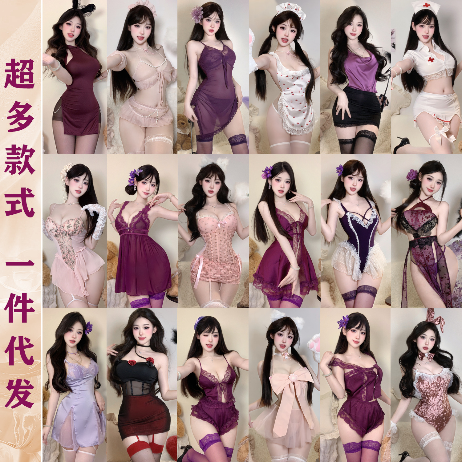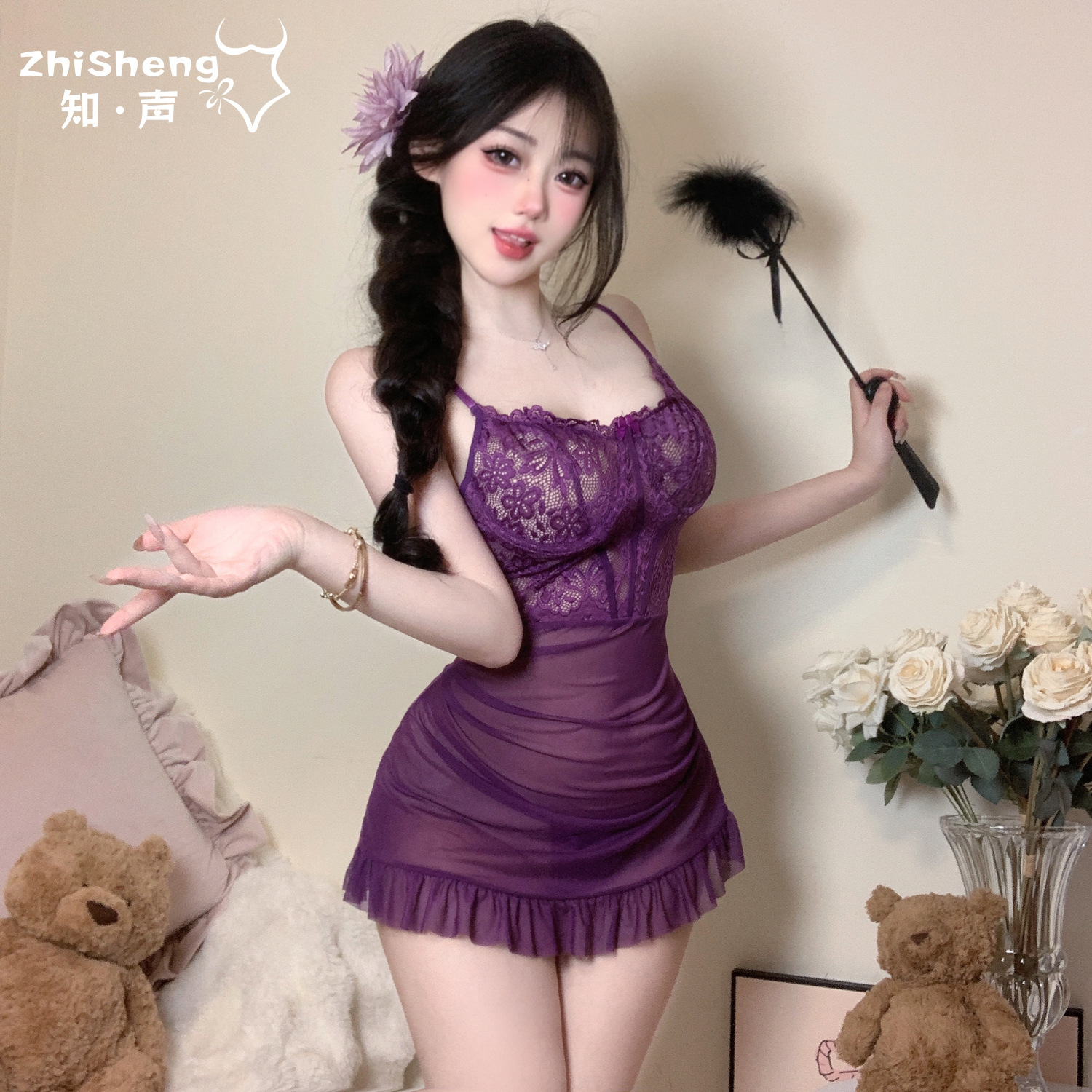 セクシーなガーターの半ズボンの紫色の氷の糸の薄い金の甘くて辛いパジャマの純粋な欲の少女のレースの誘惑の情緒のスーツ