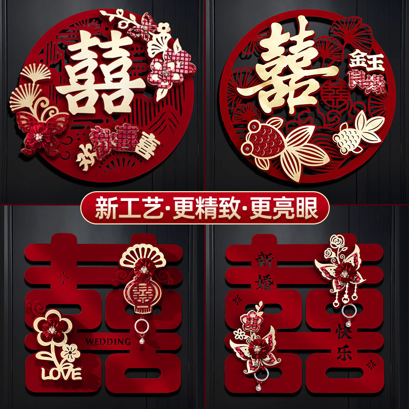 結婚式の特別な新しい家の結婚式の部屋の装飾囍の文字のドアの背景壁寝室のドア用品
