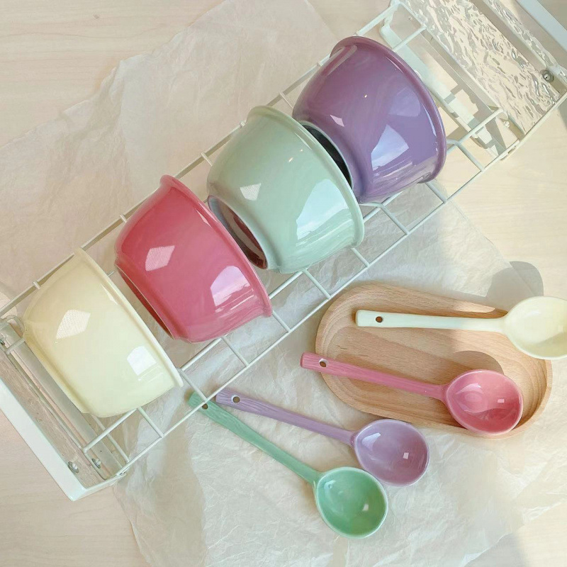 クリーム風純米茶碗陶磁器碗釉薬下彩碗スプーンセット無