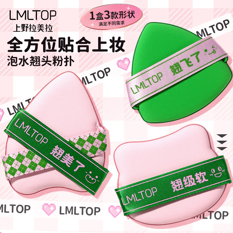 ラメラは首を長くして、パフとマシュマロの乾湿両用ファンデーション専用の化粧スポンジの三角おにぎりをします。