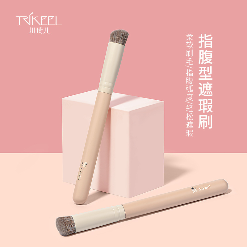 川琦は腹を指して、斜めの丸い化粧ブラシを使います。