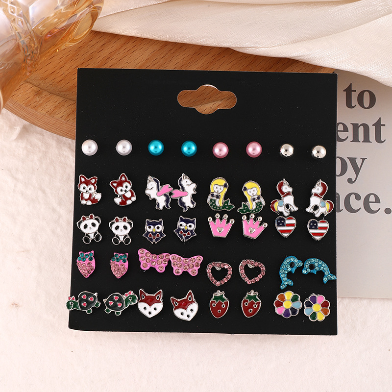 Amazon ベストセラー漫画動物セットイヤリング女性のためのシンプルでかわいいメタルラブストロベリーパンダイヤリング