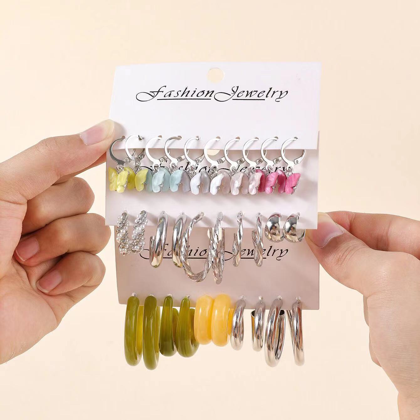 欧米の国境を越えた耳飾りセット女性ファッションかわいいカラー蝶真珠酢酸c型レトロな耳飾りイヤリング