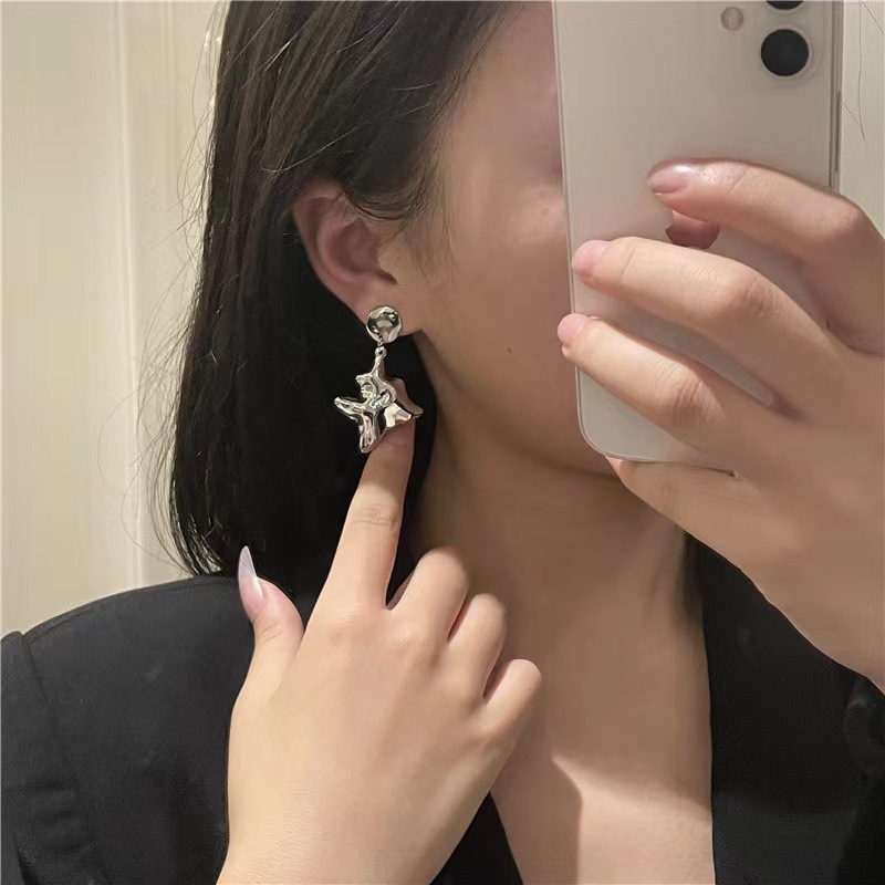 欧米の越境した新型の耳飾りの女性のファッションの気質の高級感の金属の溶岩の不規則なしわの冷たい風のイヤリング
