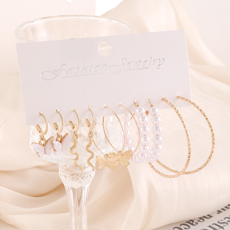 韓国版韓国風幾何学セット耳飾りファッションかわいい蛇金色蝶真珠耳輪イヤリング