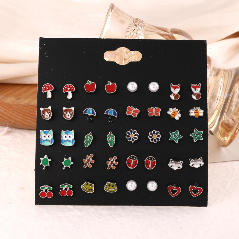 メーカー直販クロスボーダー耳飾り卸売りセット女性かわいい小型アニメフクロウさくらんぼ蝶ピアス