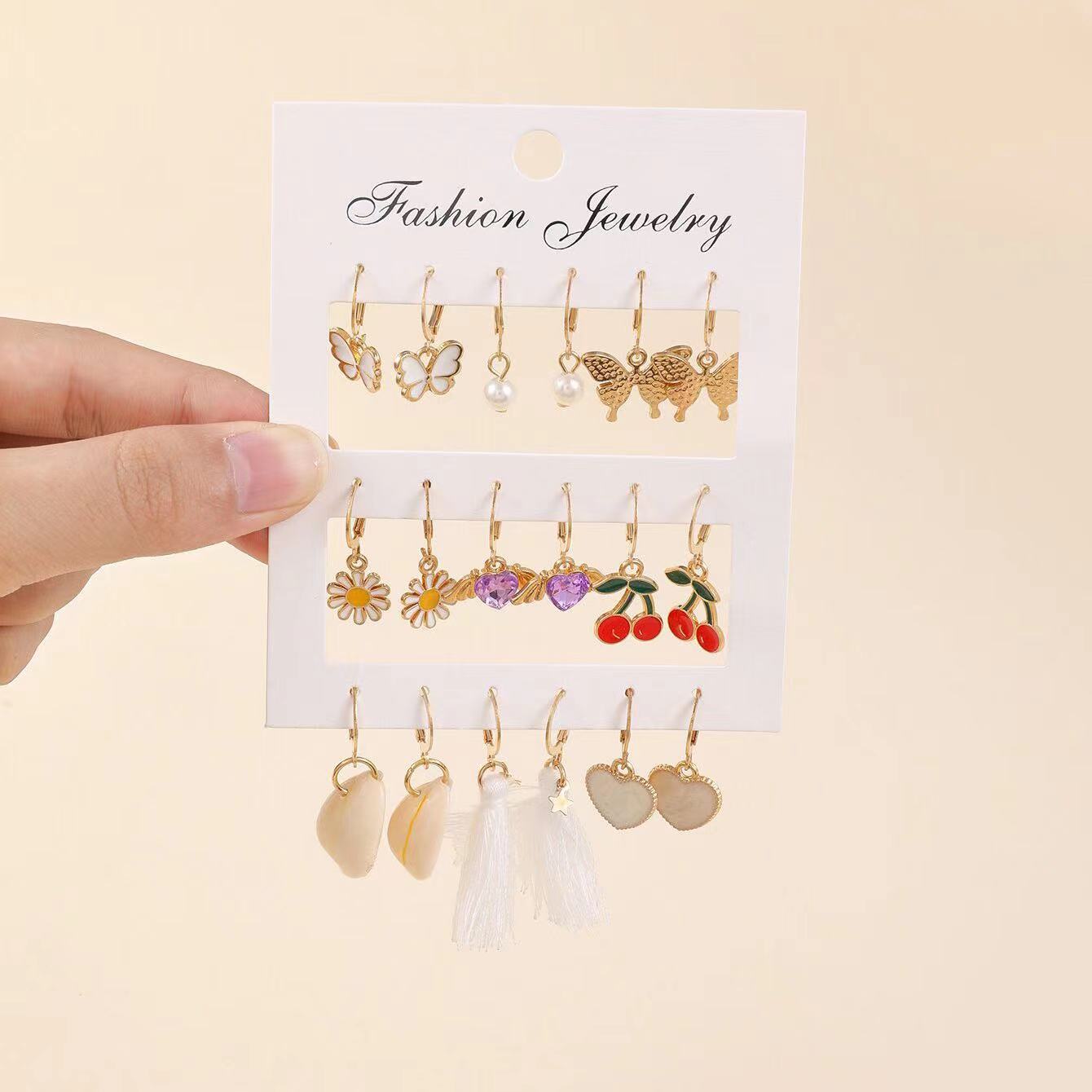 日韓のかわいい甘くて清新な耳飾りセットの蝶の愛のさくらんぼの精緻なデイジーの貝殻のフリンジのイヤリング