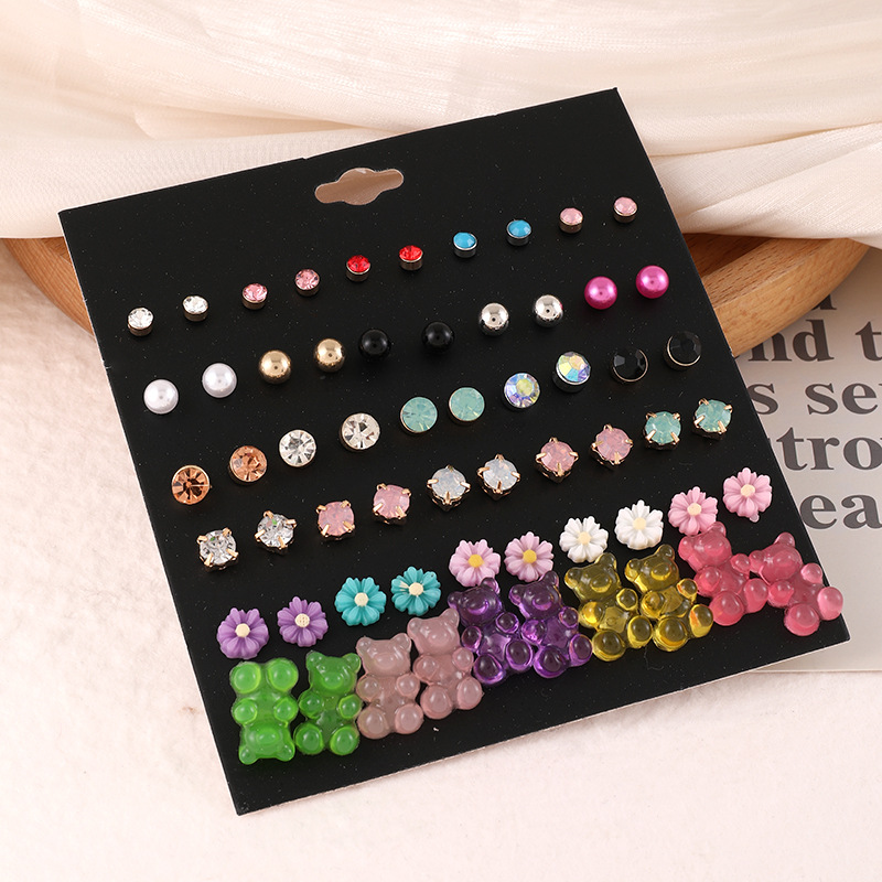 義烏メーカー耳飾りセット女性30対アニメかわいいシンプルで清新な花真珠熊ピアス