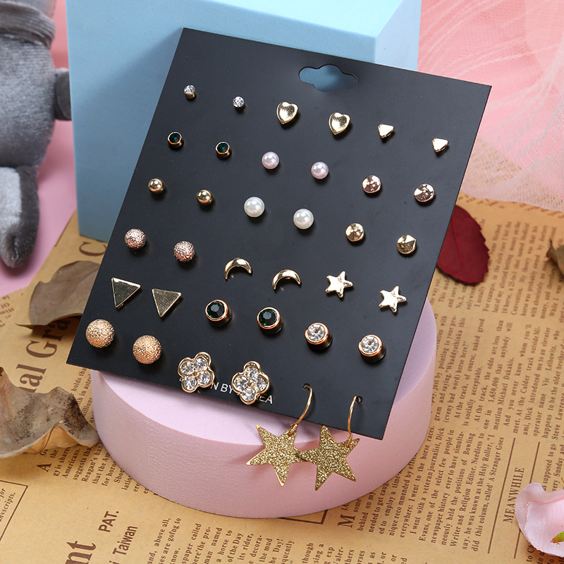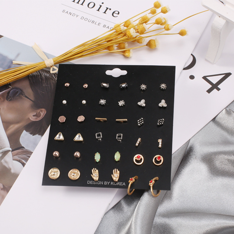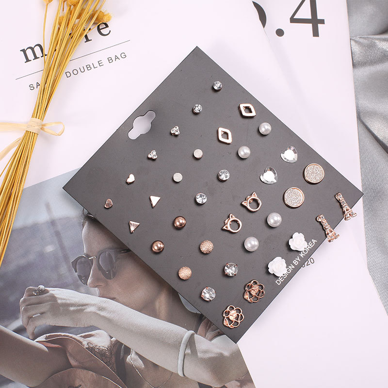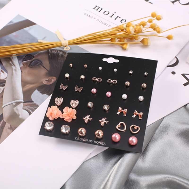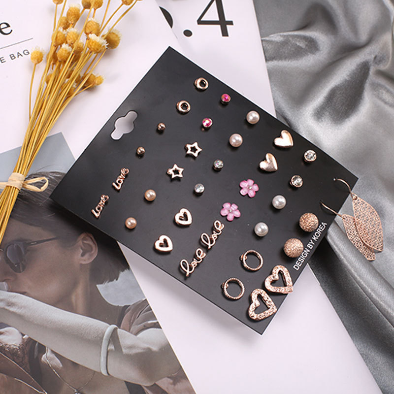 アマゾンクロスボーダー耳飾りセット女性シンプルins風金属満ドリル愛花合金イヤリングピアス