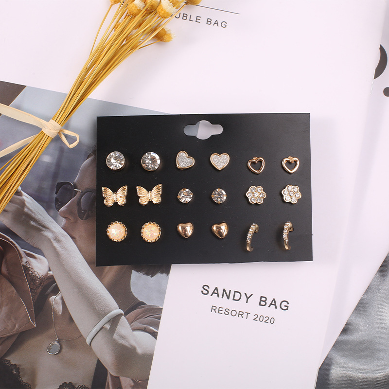 メーカースポット2021新型ファッション9対一カード耳飾り蝶合金愛多対ピアス女