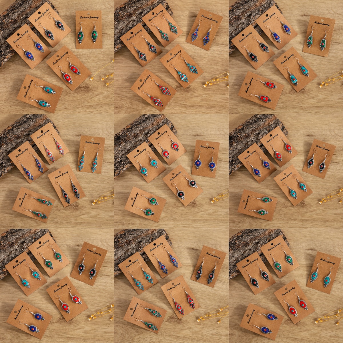 欧米で人気の合金ターコイズ象嵌、多様な色から選べるレトロボヘミアン風イヤリング(女性用)