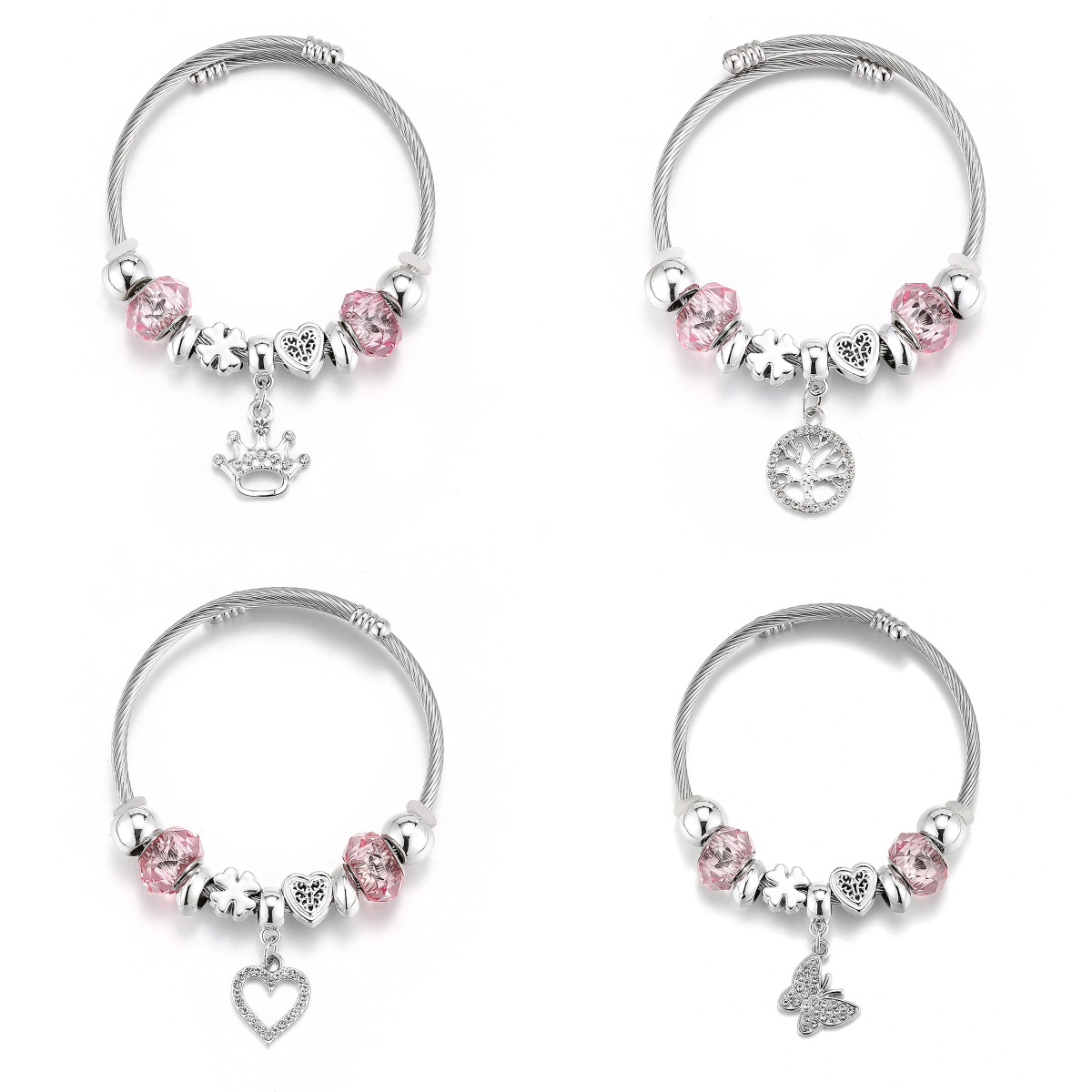 2025潘家ステンレスクラウンビーズブレスレット調節可能なブレスレット女性ファッションジュエリープレゼントクロスボーダー卸売