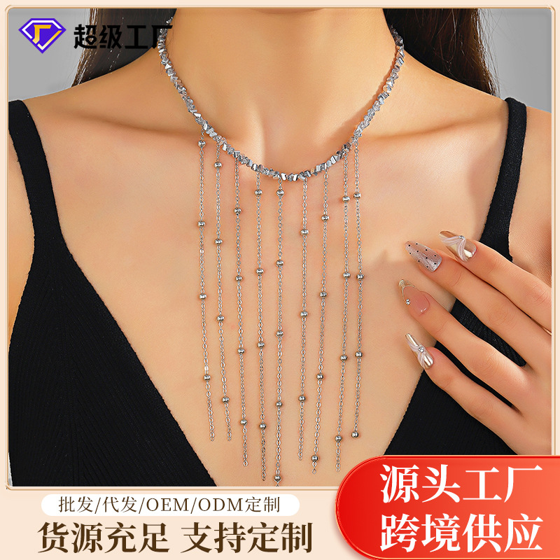 ヨーロッパとアメリカのクロスボーダータッセルネックレスロングチェーンファッションタッセル鎖骨チェーンインライト高級ハイエンドビーズネックレス