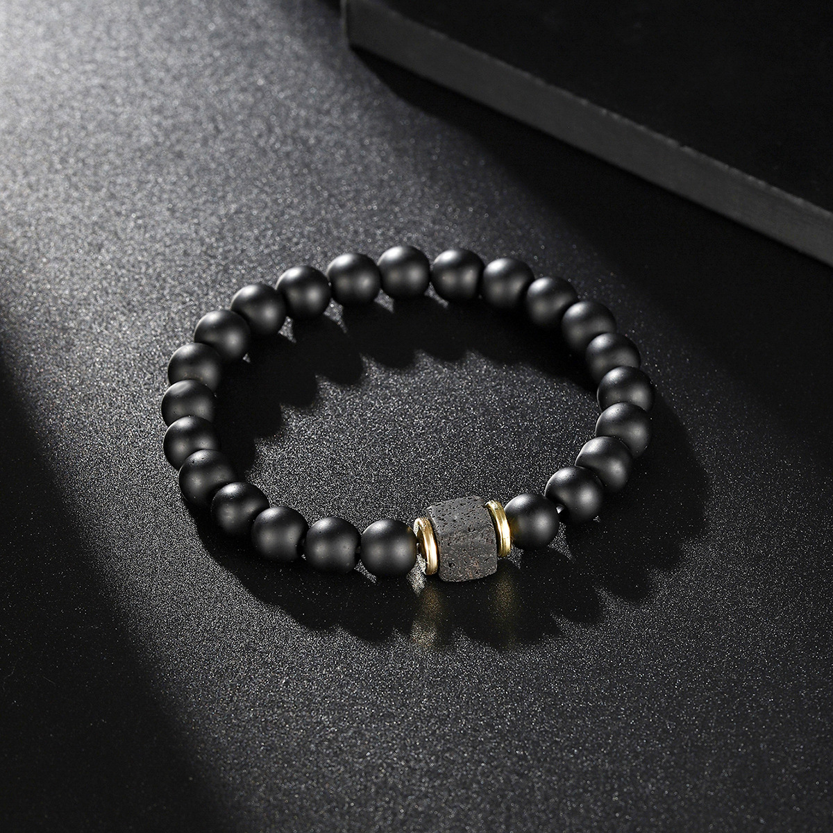 クロスボーダー爆金メンズ8mmフロスト火山石ブレスレット角型黒瑪瑙ファッション高級感ビーズアクセサリー