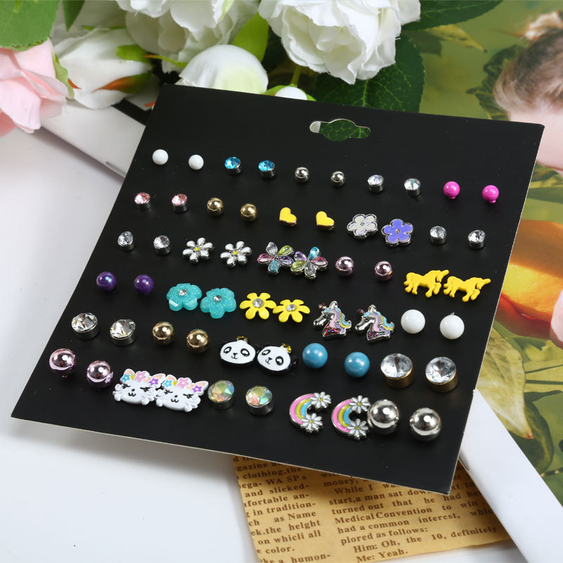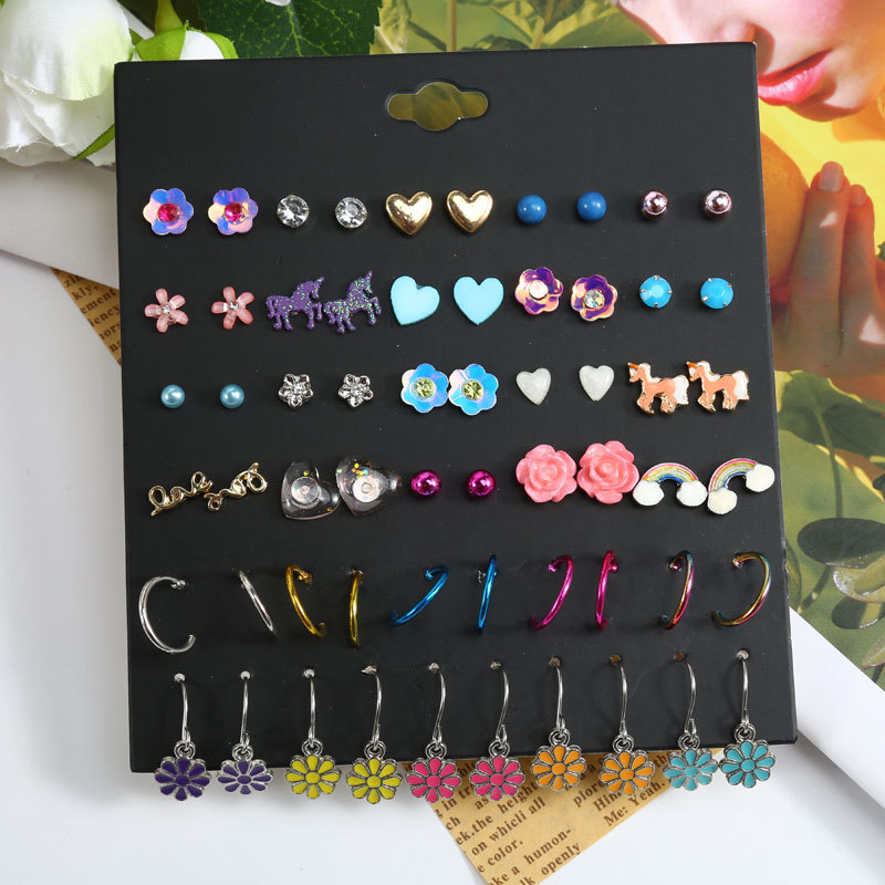 クロスボーダー耳飾りセット女性シンプルで可愛いユニコーン虹愛花熊ccb合金ピアス